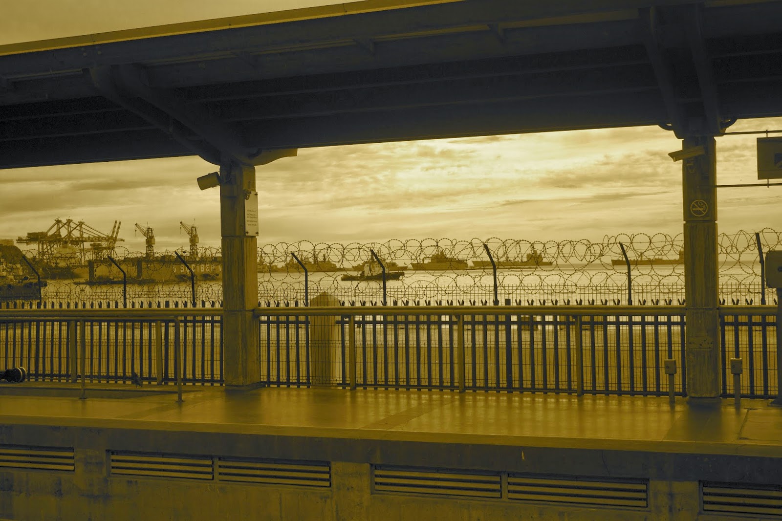 funicular, towering town houses and multi-coloured, muralled walls of Valparaiso. The town clings to the hillside surrounding the deep natural harbour